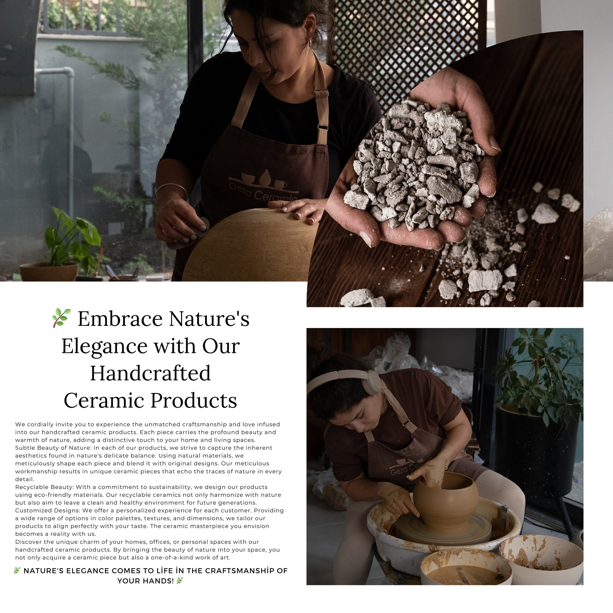 All Geza Ceramic Products are handmade and we produce our products in an organic and recyclable way with the color and texture of the mud itself without using glaze paint. Our products are completely personalized and you can look at our color and texture selections from our catalogs. . Thank you...